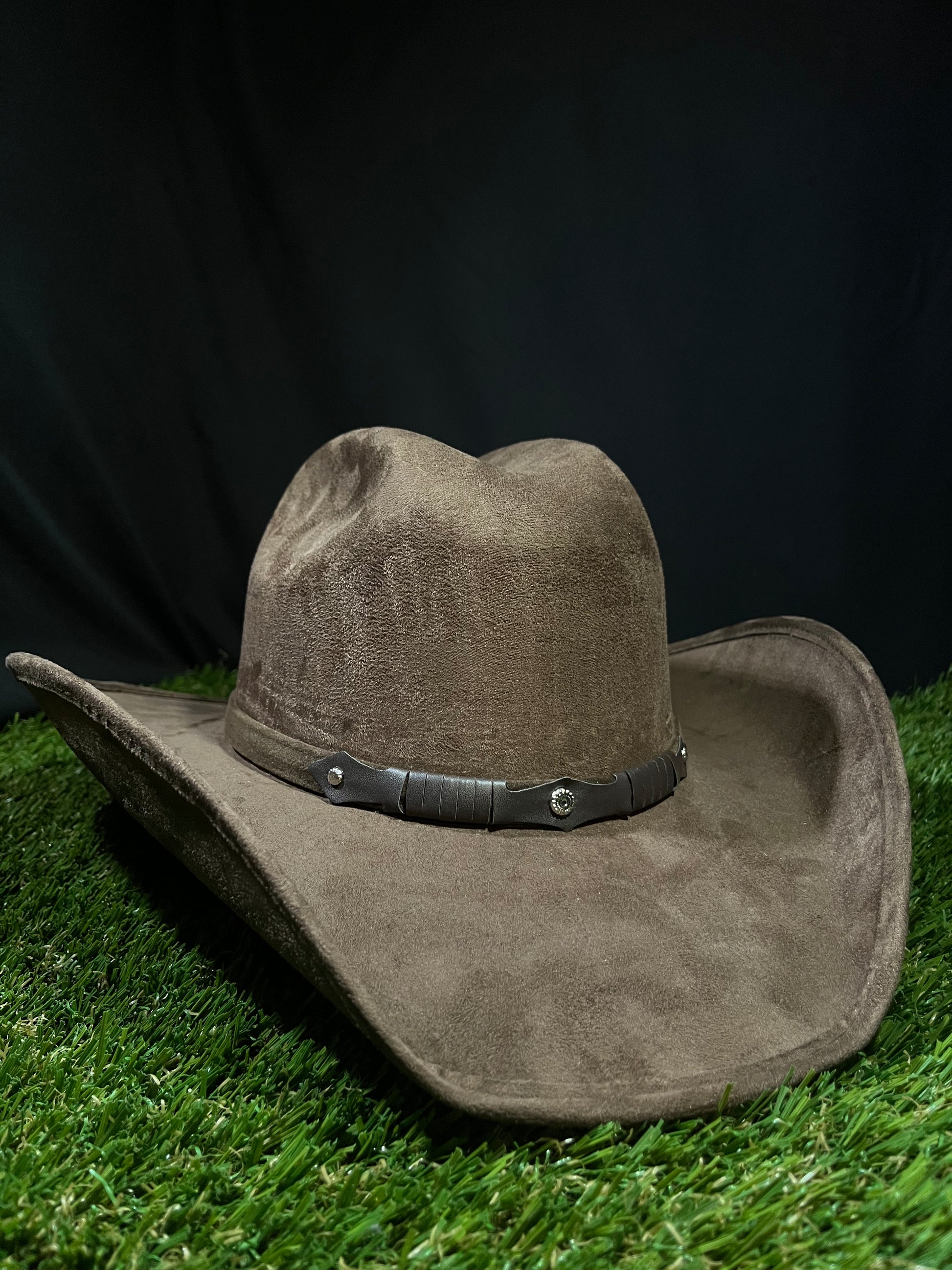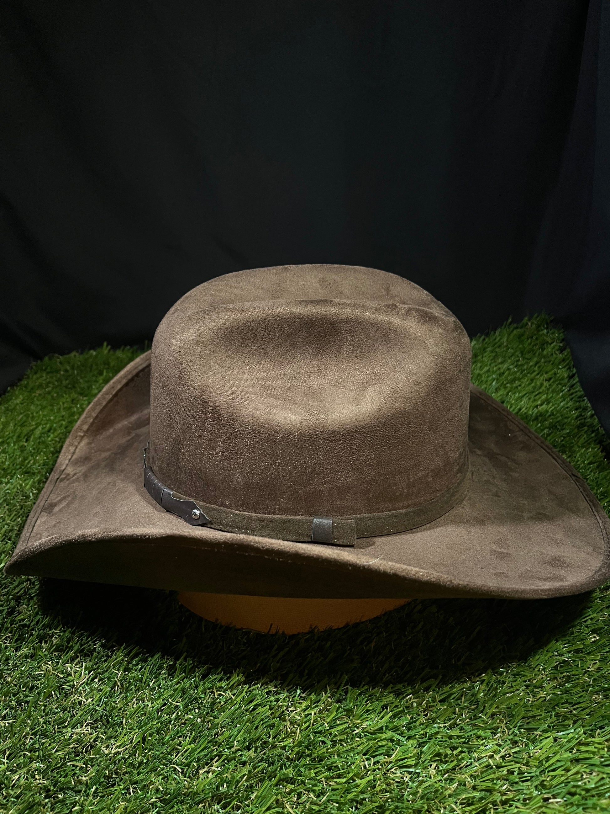 Saddle up in classic Western style with this Brown Suede Finish Cowboy Hat — designed for both men and women who carry that timeless frontier spirit.