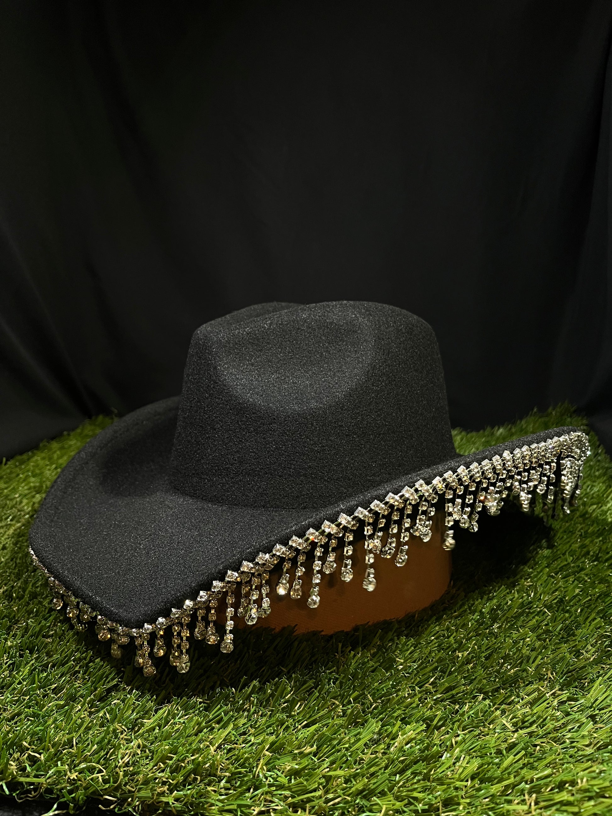 Timeless Western elegance meets sparkling sophistication. This classic black hat features a stunning chandelier-inspired rhinestone design, adding just the right amount of shine to elevate any outfit. Perfect for rodeos, nights out, or making a statement wherever you go. Crafted with high-quality materials for durability and lasting style.