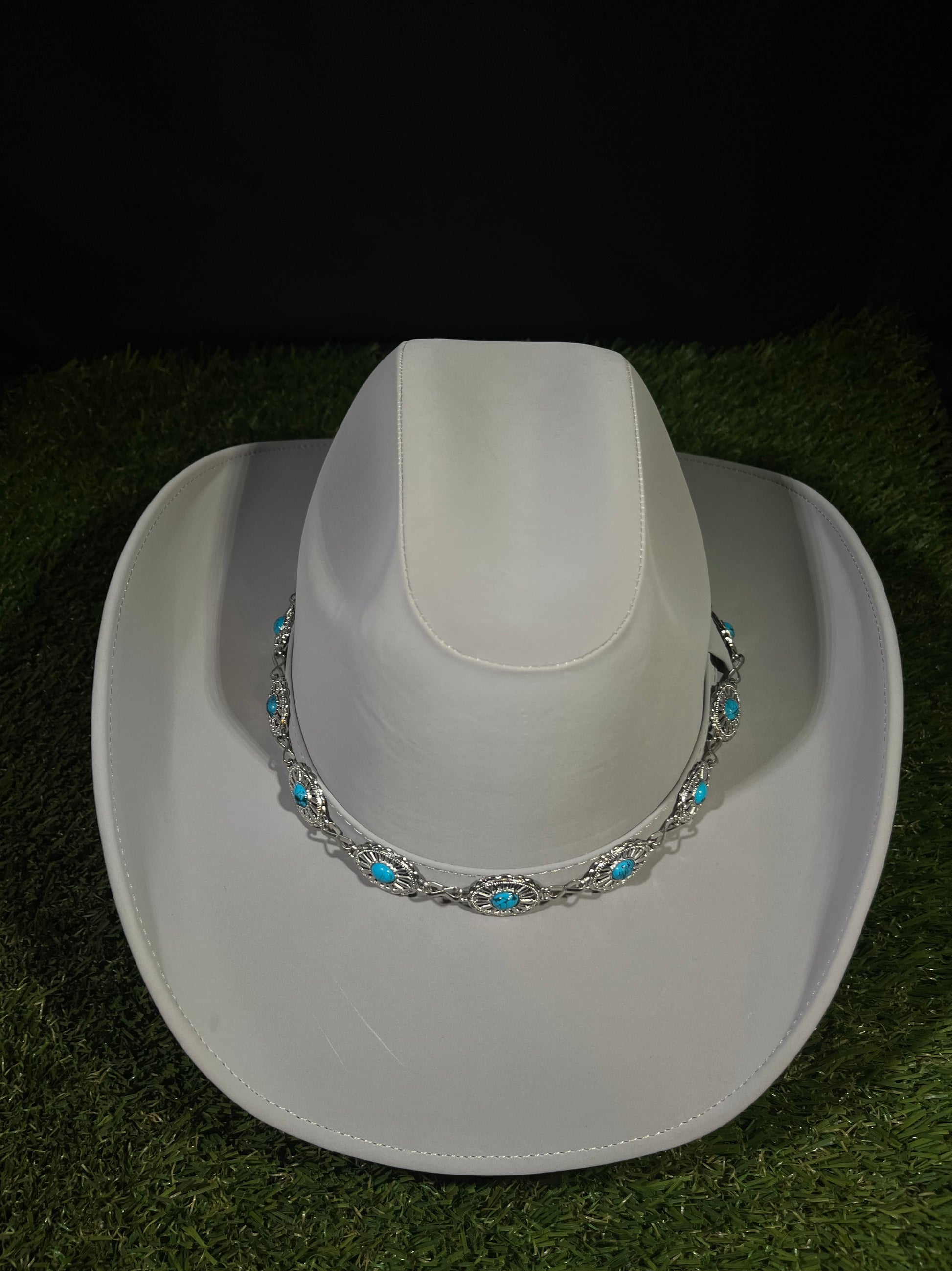 Style meets symbolism. This ivory Western hat features a striking Evil Eye design for protection and positive energy, paired with a clean, classic felt silhouette. Perfect for those who want to stand out with meaningful style — whether on the trail, at a night out, or anywhere you want to make a statement. Crafted with high-quality materials for lasting wear and timeless appeal.