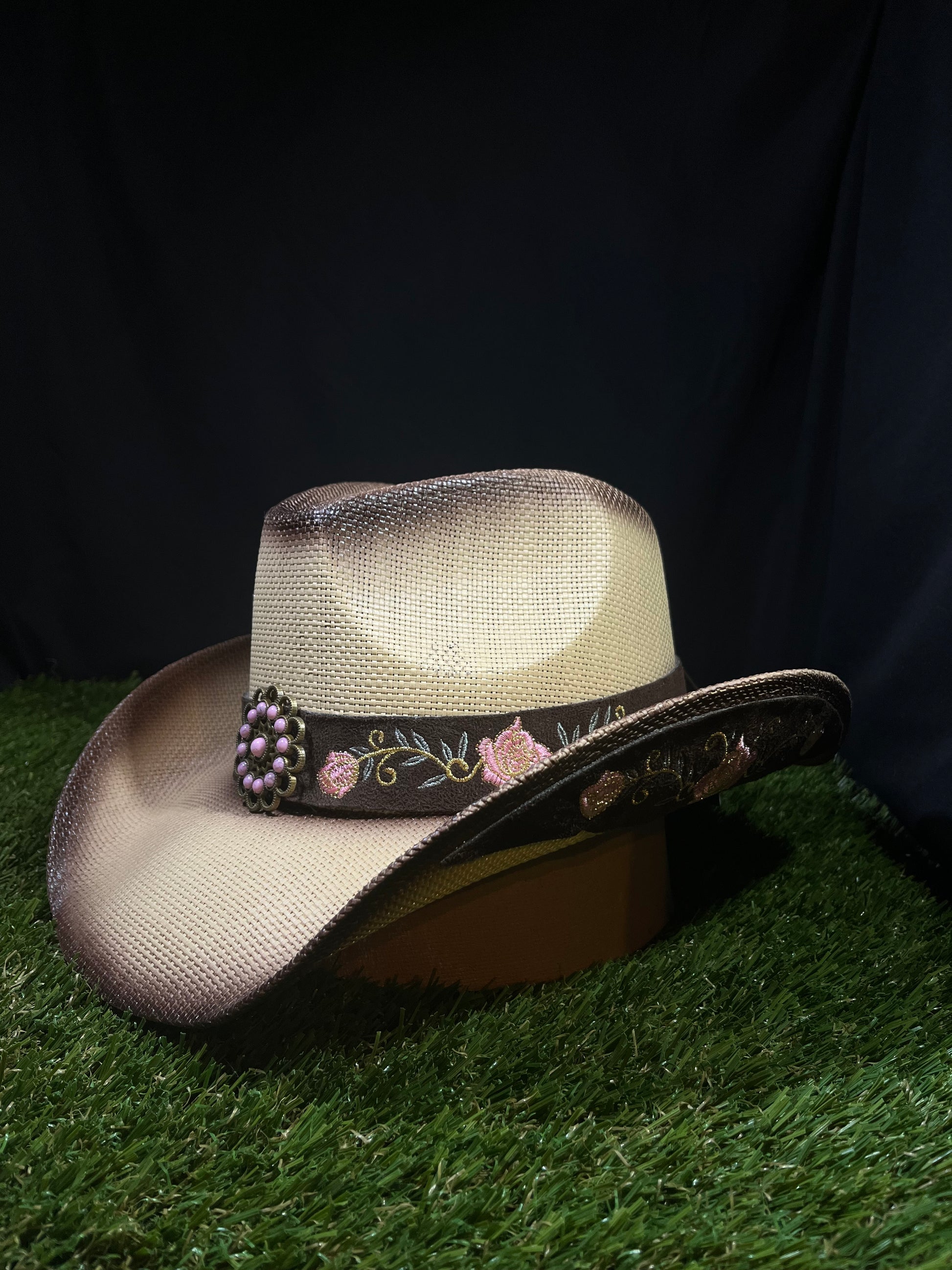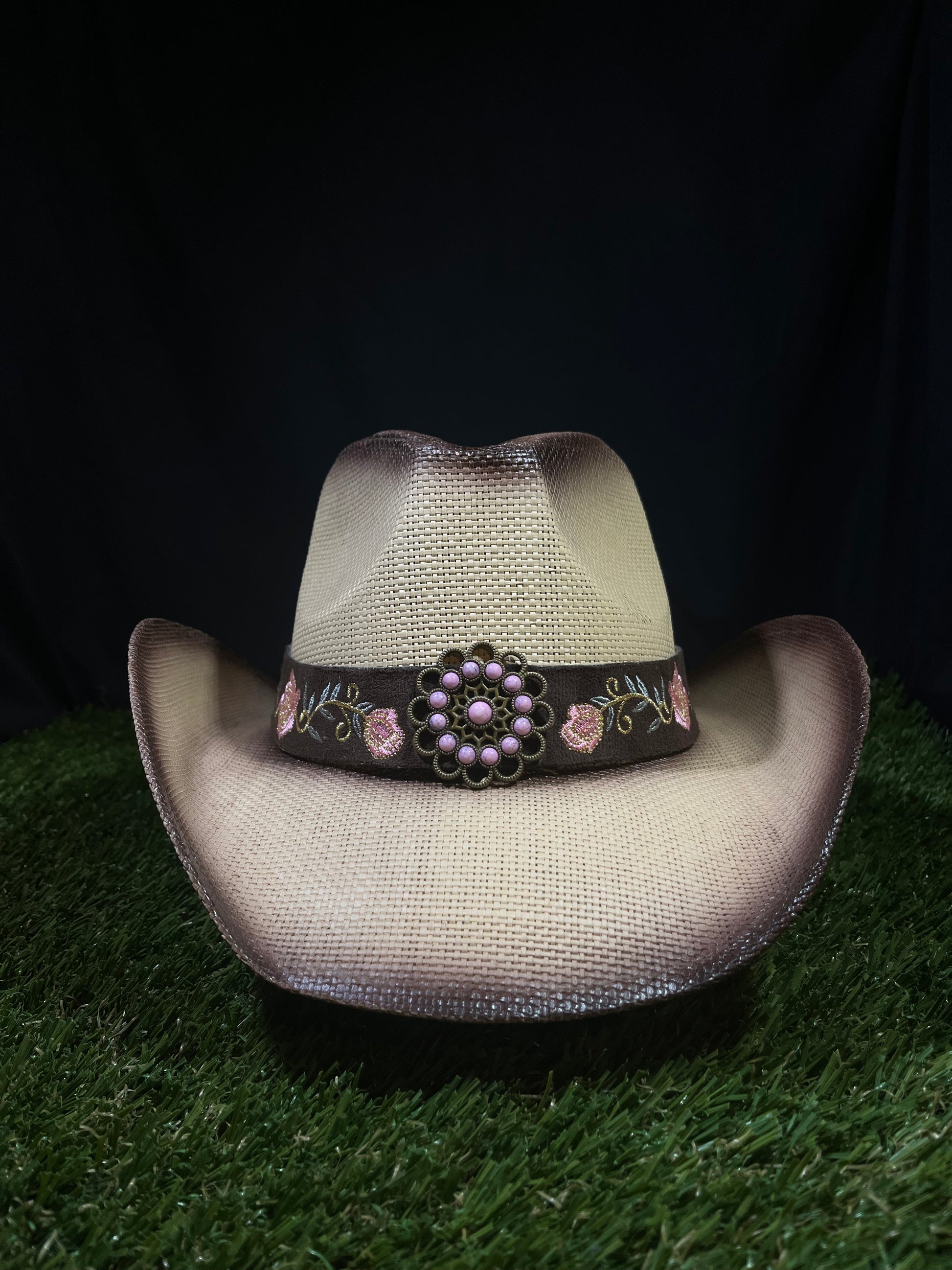 - Embroidery Pink Flower Band Stand out in your own legacy in the crowd with this cowboy hat featuring handmade peony embroidery for an exquisite and unique look.
